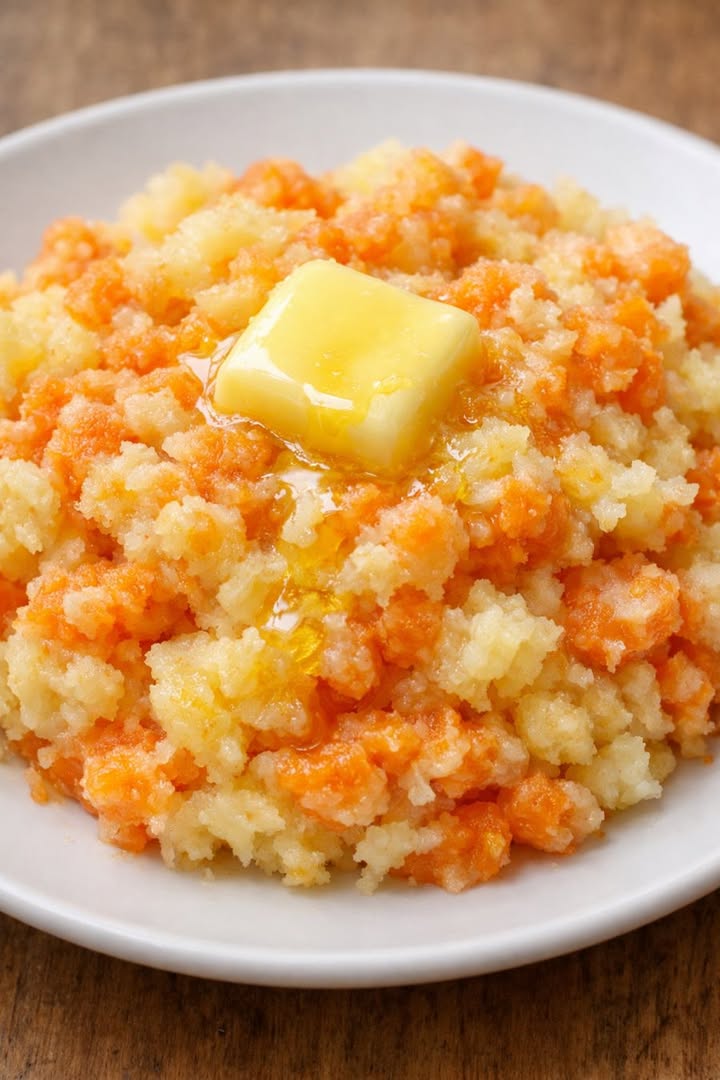 This slow cooker 4-ingredient carrot and potato mash is the kind of humble, stick-to-your-ribs meal my great-grandmother leaned on during the Depression years. It uses the most basic pantry staples—potatoes, carrots, butter, and a little salt—to turn almost nothing into something warm, filling, and comforting. Everything simmers low and slow until the vegetables are soft enough to mash with the back of a spoon, giving you a rustic, pale yellow and bright orange mash with a pat of butter melting over the top. It’s the sort of cozy, budget-friendly dish that can be a simple supper on its own or a hearty side stretched across several plates.