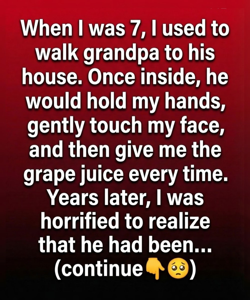 During those years, my grandfather had already begun losing pieces of his memory. Everyday things confused him—where he left objects, what he’d done earlier that morning. But one thing never faded: the knowledge that I was coming. The reason he held my hands and studied my face so carefully was because he was trying to anchor me in his mind, making sure I stayed familiar. The grape juice, she explained, was tied to his medication. Doctors had advised him to drink it regularly, and by sharing it with me, he turned treatment into connection, replacing fear with tenderness.